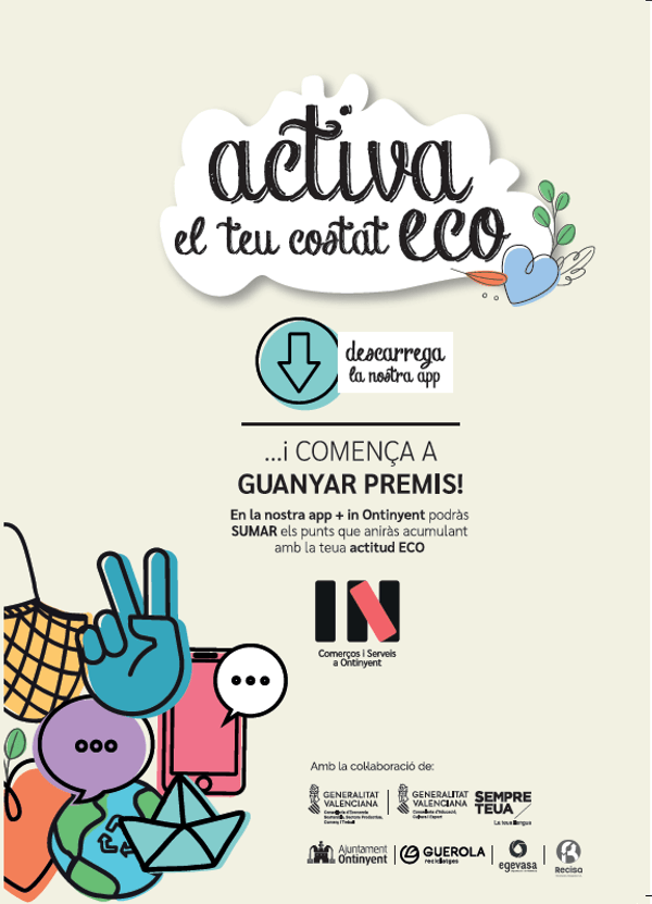 L’Associació de Comerciants "Comerç IN” d'Ontinyent ha posat en marxa una nova campanya comercial que premia actituds beneficioses amb el medi ambient: “Activa el teu costat eco” compta amb el suport de l’Ajuntament i la Conselleria d’Economia, i donarà regals com botelles d'aigua reutilitzables, mascaretes Tèxtil Ontinyent o Ecodiners per gestos com utilitzar cistelles i cabassos per fer la compra al comerç local o compartir ecoconsells a les xarxes socials.